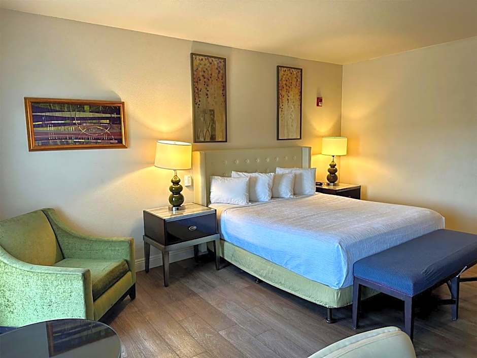 This spacious suite features an extra-large bed, free Wi-Fi access and a hydromassage bath.